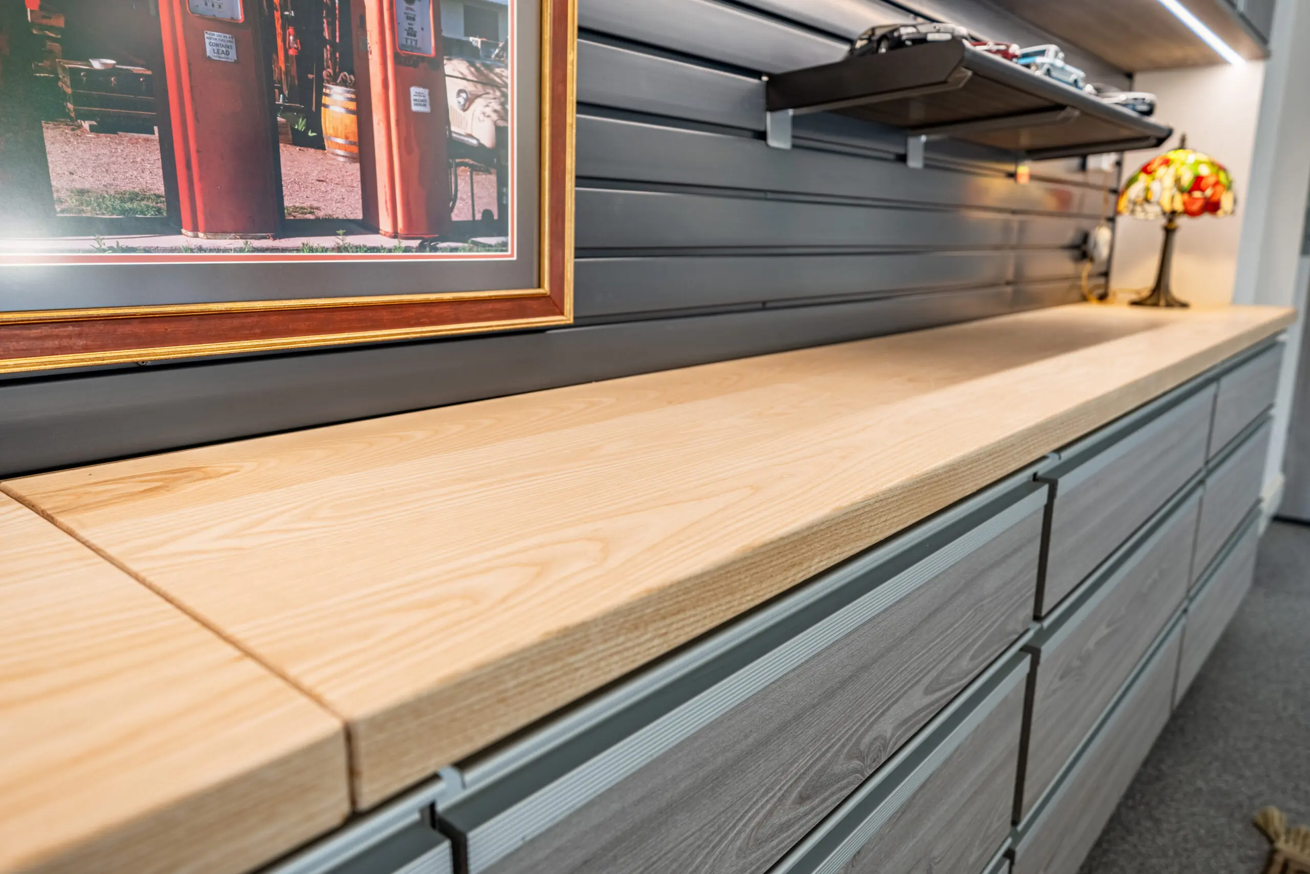 Strong, durable, and built to last—our garage shelving systems give everything its own place. Whether you need open shelving for quick access or heavy-duty racks for larger items, we’ll design a setup that keeps your garage organized and functional.